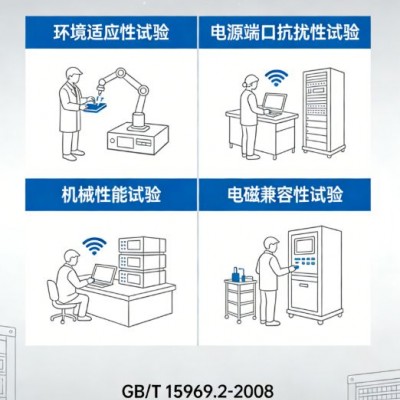 依据标准要求,检测项目可分为环境适应性试验、机械性能试验、电源端口抗扰性试验、电磁兼容性试验四大类,具体如下: